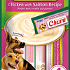 Inaba Dog Churu™ Chicken with Salmon es un novedoso y delicioso snack* para perros de textura cremosa (puré) y alta palatabilidad. Tiene un alto contenido de humedad lo que contribuye a la hidratación de su perro. Estas golosinas cremosas para perros están hechas con pollo 100% puro y natural de criadero y salmón del pacífico. Libre de granos, sin conservantes ni colorantes artificiales. Disponible en packs de 4 y 8 tubitos de 0.7 oz (20 g)
